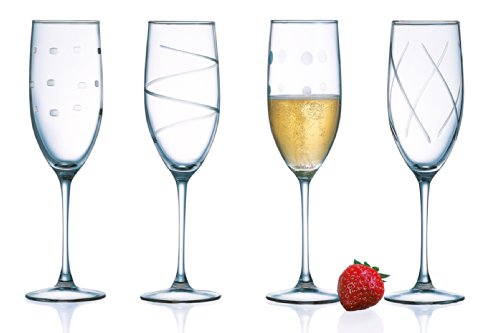This Soho style from Arc International is some of the most modern flutes on the market. Being one of the top-rated sparkling wine glasses on the market, Soho flutes are dishwasher safe and have a fun, modern design. They typically come in a set of four and they each have a unique and fun design on them.