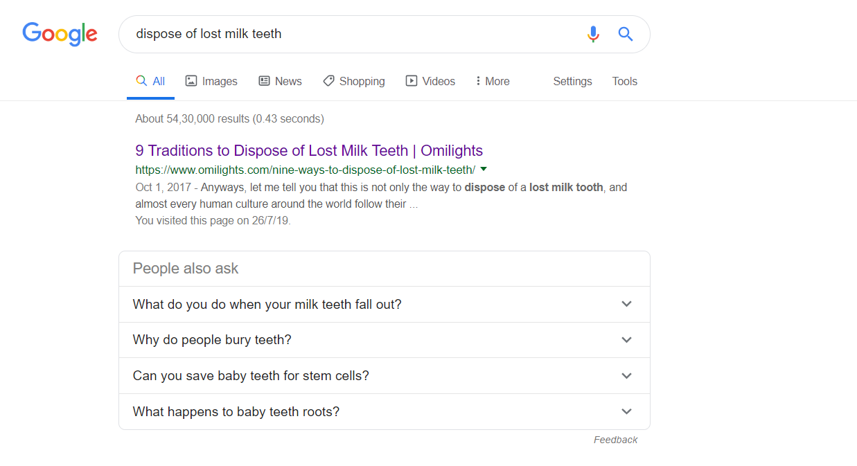 - Another keyword that brings omilights on top search is “dispose of lost milk teeth“.First glittering pearly white teeth appear in your baby’s mouth on an average around 6 months of age. Your little one normally has 20 baby teeth until about the age of 6 years, after that he is supposed to shed them, and they eventually get replaced by permanent teeth.