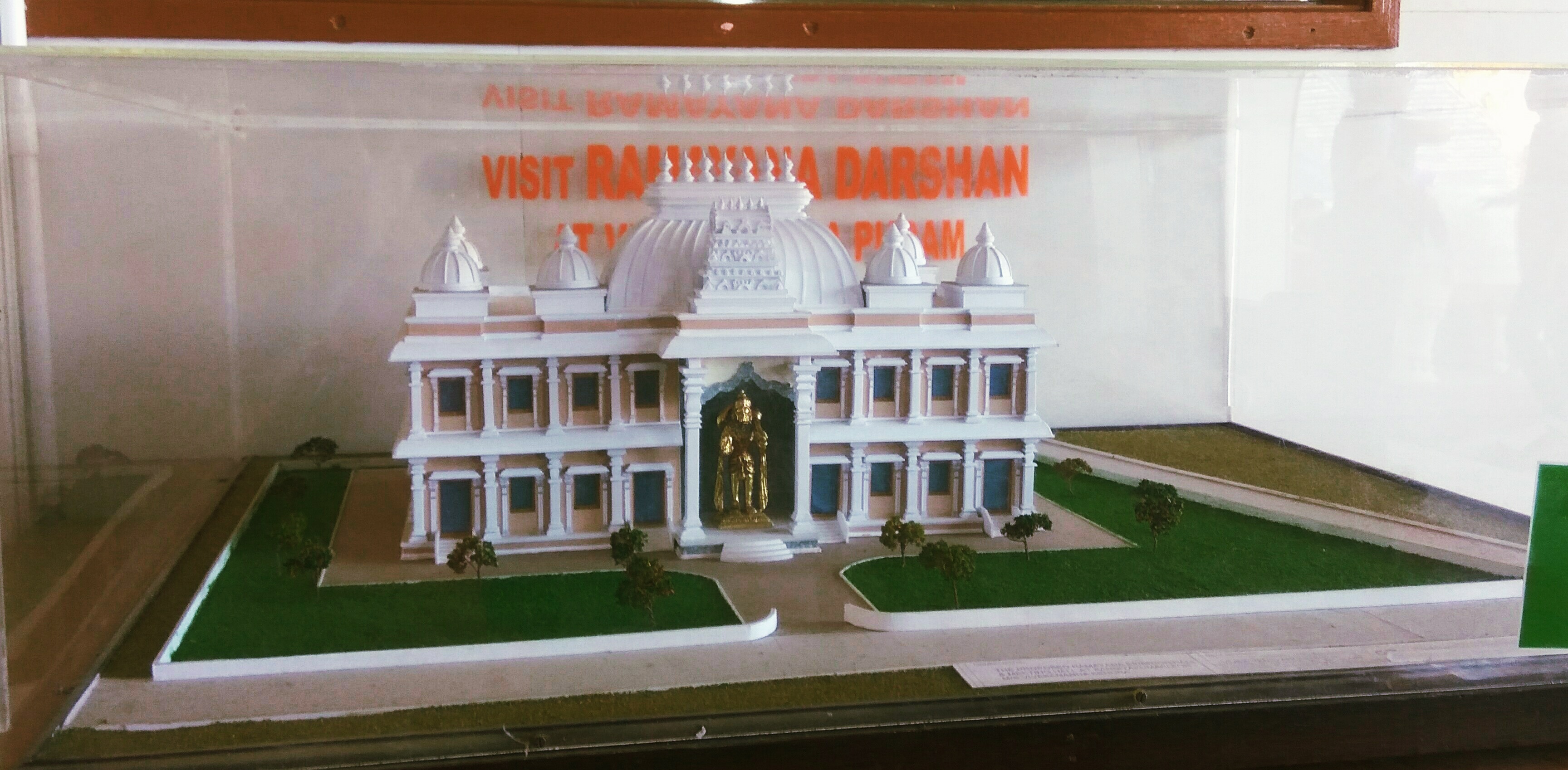 Glass enclosure depicting Ramayana in memorial premises.